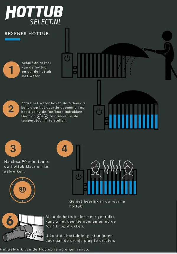 Voor het gebruik van de hottub dient u de beschrijving hottub (zie onder) te lezen en te volgen.